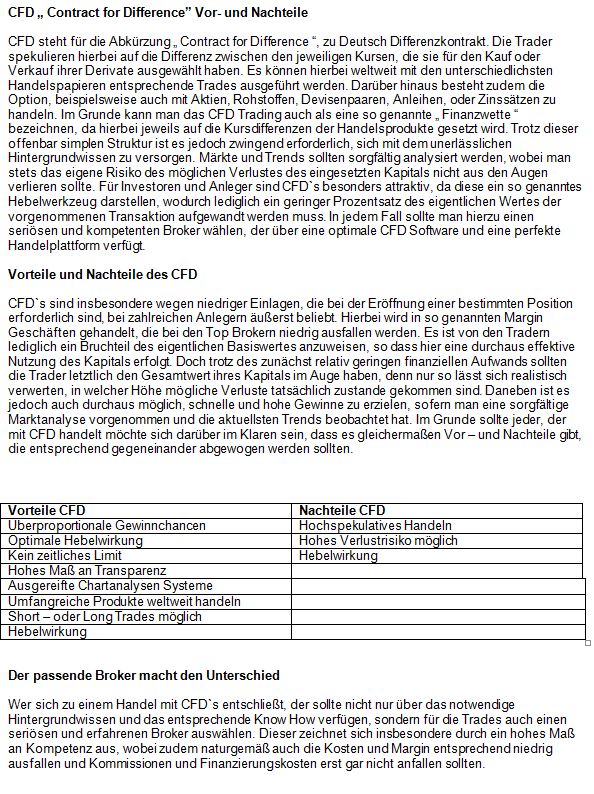 Ich habe nun einen 450 Wörter langen Text im Angebot mit dem Titel „CFD „ Contract for Difference” Vor- und Nachteile“