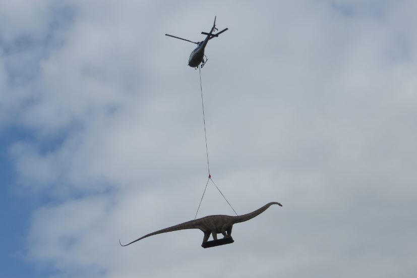 Für eine Dinosaurier Ausstellung im Erzgebirgsbad würden die Dinosaurier mit einem Hubschrauber zu ihrem Ausstellungsplatz geflogen.
