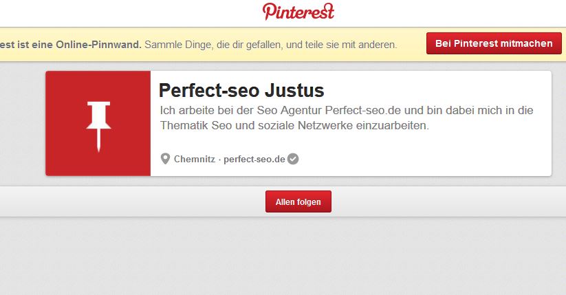 Hier könnt ihr nun das gerade erstelle Pinterest Profil mit dem Link nach Perfect-seo.de anschauen.