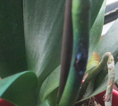 Auf dem einen Foto sieht man die wirklich schöne Blüte der blauen Orchidee und auf dem anderen die Einstichstelle am Blütenstiel. Dort wurde die blaue Farbe injiziert.