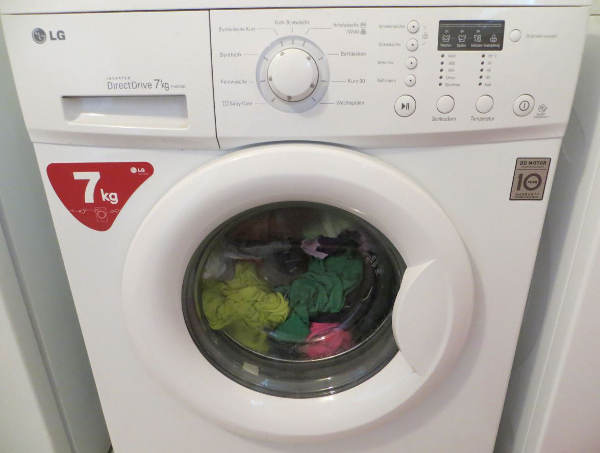 Ich bin also in den Waschkeller und habe ein Foto von unserer Frontlader Waschmaschine von LG gemacht.
