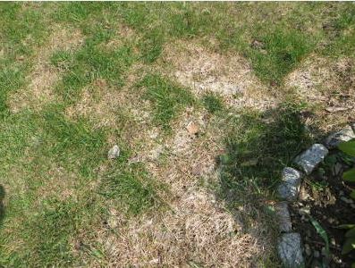 Heute habe ich mich auch mal kurz dem Rasen gewidmet. Auf dem Rasen waren weiße Flecken zu sehen die man auch Schneeschimmel nennt.